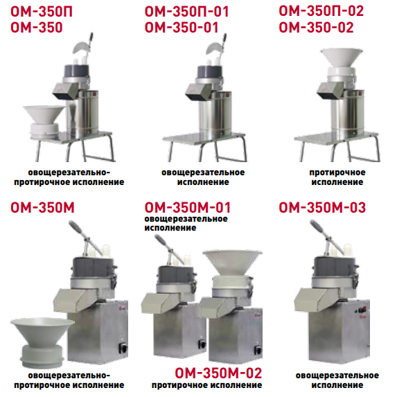 Овощерезательно-протирочная машина ТОРГМАШ ОМ-350 используется на предприятиях общественного питания и торговли для нарезания сырых овощей, шинковки капусты и протирания овощей, фруктов и творога. Модель оснащена зубчато-ремённой передачей, быстродействующими защелками для крепления и быстросъемными корпусом с лотком для удобства санитарной обработки.