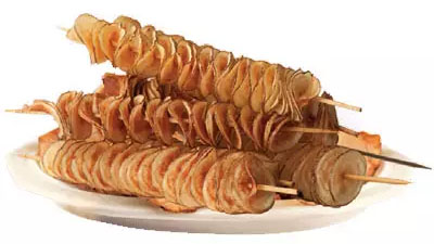 В комплект поставки не входит деревянный шампур для насадки картофеля.