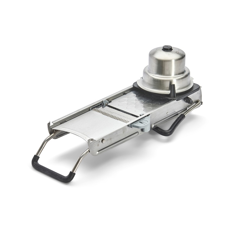 Мандолина De Buyer 2012.01 серии Revolution используется на предприятиях общественного питания, торговли и пищевых производствах для нарезки овощей, фруктов и других продуктов. Модель оснащена толкателем. Материал изделия - высококачественная нержавеющая сталь и полимерный материал.