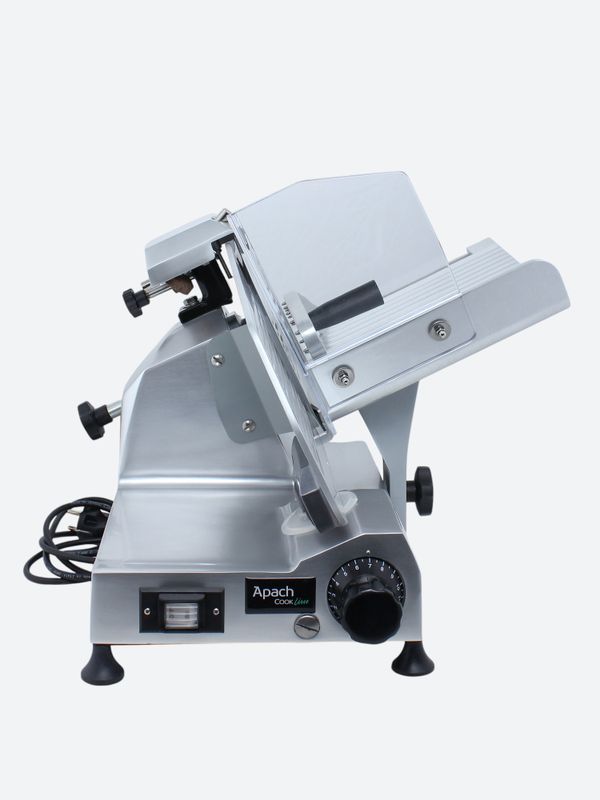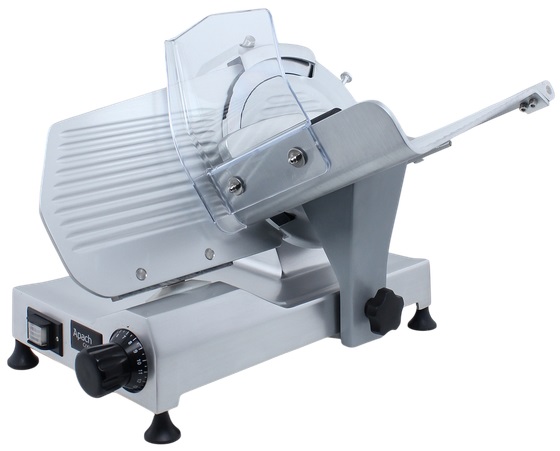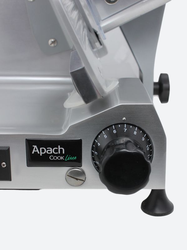 Слайсер Apach Cook Line ASL300 предназначен для нарезки различных продуктов на предприятиях общественного питания и торговли. Модель оснащена вентилируемым мотором и встроенным затачивающим устройством. Корпус выполнен из литого анодированного алюминиевого сплава, нож - из кованой углеродистой стали 100Cr6.