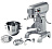В комплект поставки входят 3 насадки: венчик из алюминиевого сплава и стали, лопатка и крюк из алюминиевого сплава.