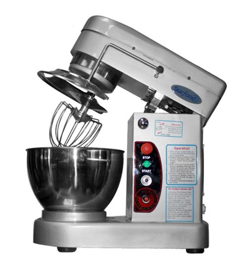 Планетарный миксер Starfood M5A предназначен для замеса различного теста, перемешивания творога и фарша, взбивания кремов, муссов и приготовления пюре, соусов и коктейлей на предприятиях общественного питания и торговли. Месильный орган вращается вокруг своей оси и оси дежи, тем самым обеспечивая получение однородной массы.