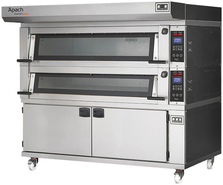 Печь подовая Apach Bakery Line E4LK1P DPBI-T серии E используется на предприятиях общественного питания, торговли, пищевых производствах, в пекарнях и кондитерских для приготовления различных блюд, выпечки хлебобулочных и кондитерских изделий. Модель оборудована цифровой панелью управления с раздельным контролем температур: верх/низ, вытяжкой пара, независимым парогенератором на каждый под, соединительным комплектом для воды и электричества, дверьми со смотровым окном и 2 изоляционными модулями. Материал козырька и корпуса - высококачественная нержавеющая сталь, материал основания - цементный агломерат с металлическим каркасом, материал теплоизоляции - минеральная вата.