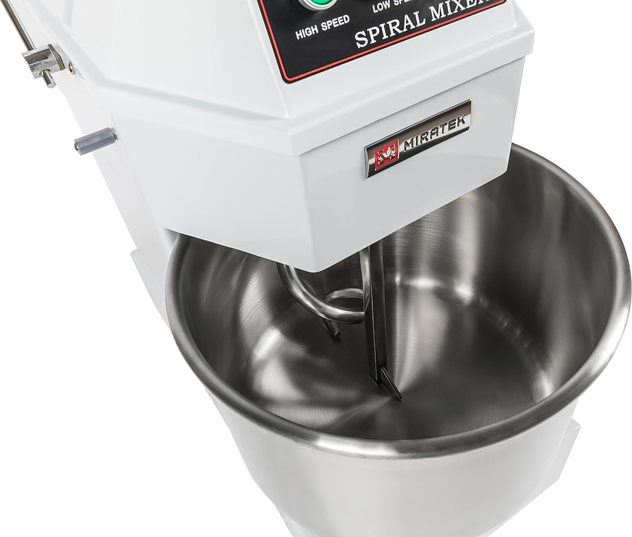 Спиральный тестомес Miratek PX-60 используется в пекарнях, кондитерских, на предприятиях общественного питания и торговли для замешивания теста с различной основой и консистенцией для выпечки большого ассортимента хлебобулочной продукции из пшеничного, ржаного и ржано-пшеничного теста.
