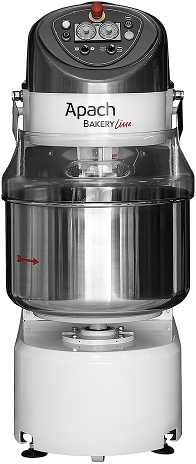 Спиральный тестомес Apach Bakery Line V-R 160 используется на предприятиях общественного питания, торговли и пищевых производствах для замеса различных видов теста: пшеничного, ржано-пшеничного, ржаного и теста для кондитерских изделий. Модель оборудована двойной трансмиссией. Материал дежи, спирали и центрального отсекателя - нержавеющая сталь.