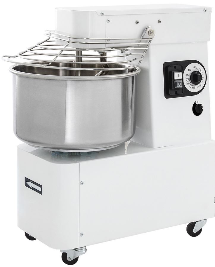 Спиральный тестомес Prismafood IBT 40 2V "EVO" предназначается для замеса слоеного, сдобного и дрожжевого теста на предприятиях общественного питания, торговли и пищевых производствах. Из полученного теста можно испечь хлеба, булочки, пироги, пиццы, лепешки и другие хлебобулочные изделия. Тестомес имеет в своей конструкции дежу, спиралевидный месильный орган, тесторазделительный стержень, крышку, колеса, приводной механизм и крюк из нержавеющей стали. Модель оснащена таймером и предохранительным выключателем на крышке. Управление при помощи электромеханической панели. Материал корпуса - окрашенная сталь.