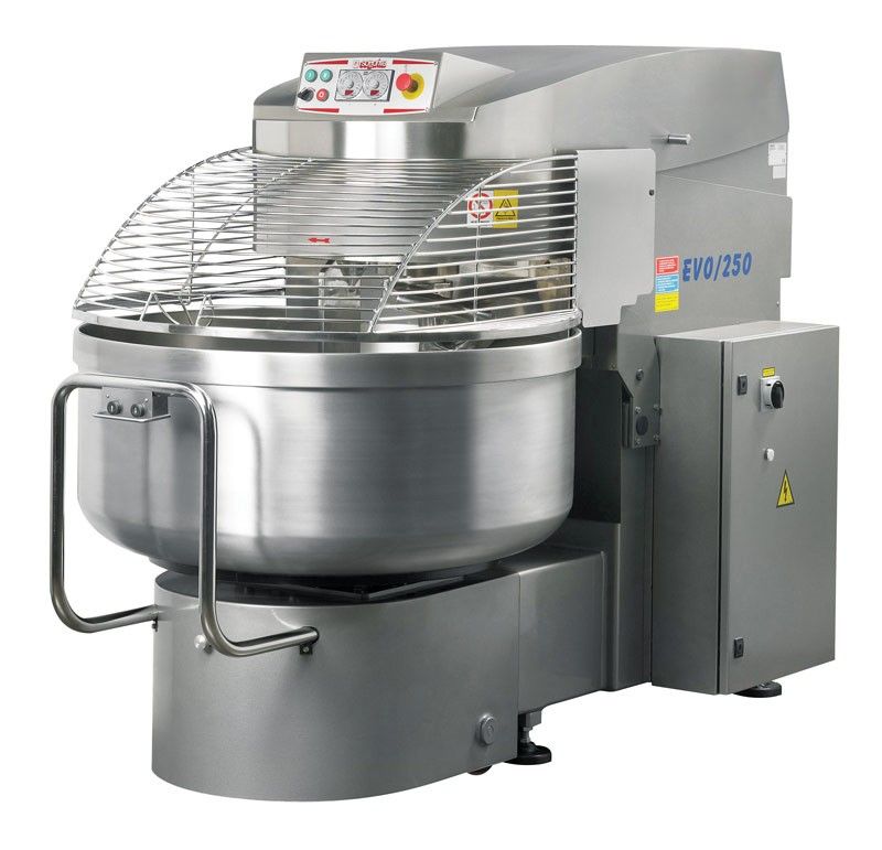 Спиральный тестомес Sottoriva EVO 130 используется на предприятиях пищевой промышленности и общественного питания, в пекарнях и кондитерских для замеса различных видов теста. Модель оснащена гидравлическим подъемным механизмом траверсы, подкатной дежой, мощным двигателем с ременным приводом, обеспечивающим вращение спирали, отдельным двигателем для вращения дежи, контрольной панелью управления и защитной крышкой над дежой. Корпус выполнен из окрашенной стали, дежа и спираль - из нержавеющей стали.