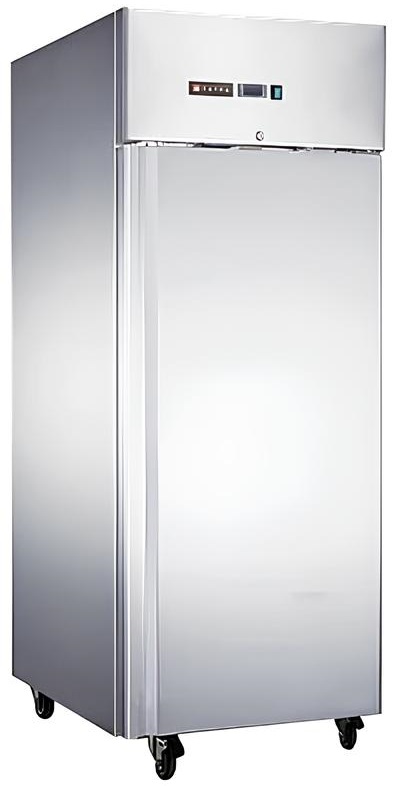Шкаф холодильный Tatra TRC500 TN используется для охлаждения и кратковременного хранения продуктов питания на предприятиях общественного питания, торговли, а также пищевых производствах. Модель с электронным управлением, автоматической разморозкой, встроенным компрессорным холодильным агрегатом, дверным замком и 4 колесами, 2 со стопорными ограничителями. Материал корпуса - высококачественная нержавеющая сталь, материал задней стенки - оцинкованная сталь.