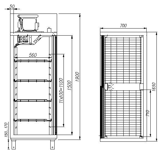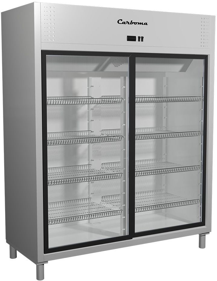 Холодильный шкаф Carboma R1400К предназначен для охлаждения и кратковременного хранения скоропортящихся продуктов на предприятиях общественного питания и торговли. Модель оснащена 8 регулируемыми по высоте полками-решетками, которые можно установить "под углом", 2 прозрачными дверцами-купе, 2 замками и ножками высотой от 150 до 170 мм. Корпус выполнен из оцинкованной стали, дверцы - из стекла.