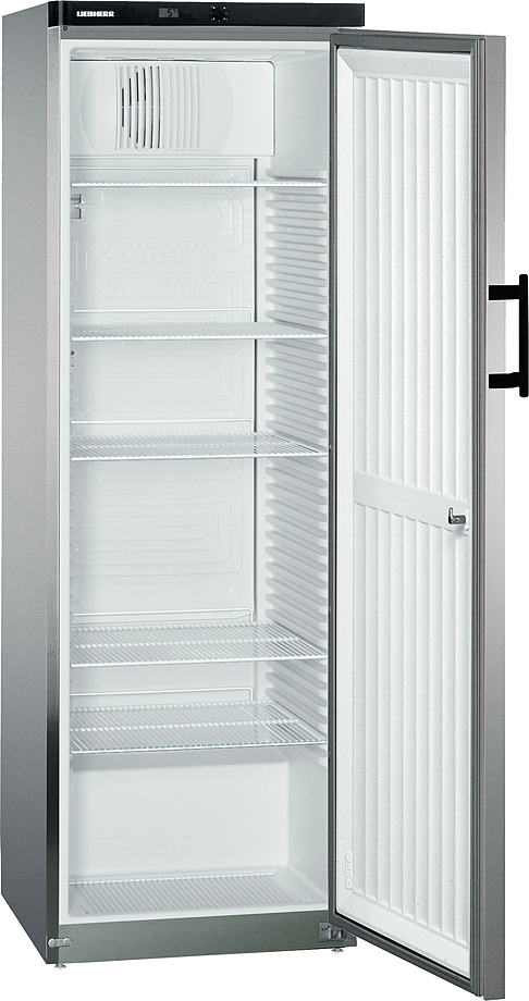 Холодильный шкаф Liebherr​ GKvesf 4145 предназначен для охлаждения и кратковременного хранения скоропортящихся продуктов и напитков на предприятиях общественного питания и торговли. Модель оснащена механическим управлением и цифровой индикацией температуры. Внутренняя прокладка выполнена из белого полистирола, боковые стенки и дверь - из стали, регулируемые ножки - из оцинкованной стали, покрытие решеток - из пластмассы.