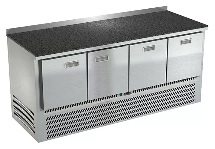 Холодильный стол Техно-ТТ СПН/О-422/22-1907 предназначается для раскатки теста, обработки, охлаждения и кратковременного хранения продуктов и напитков на предприятиях общественного питания, торговли и пищевых производствах. Секции оснащены направляющими и ящиками с доводчиками. Материал корпуса - нержавеющая сталь AISI 430, материал столешницы - гранит (толщина 20 мм), материал задней панели и дна - оцинкованная сталь.