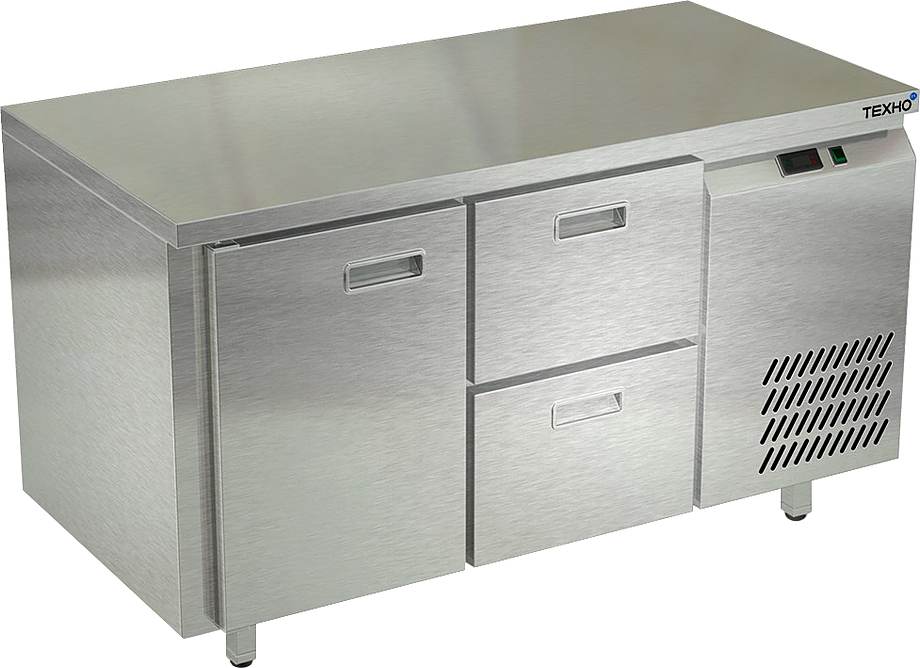 Холодильный стол Техно-ТТ СПБ/Т-122/12-1306 предназначается для раскатки теста, обработки продуктов и ингредиентов, заморозки и хранения продукции, а также для размещения теплового оборудования на предприятиях общественного питания, торговли и пищевых производствах. Двери оснащены доводчиками. Материал корпуса и столешницы - нержавеющая сталь AISI 430, материал дна и задней панели - оцинкованная сталь.