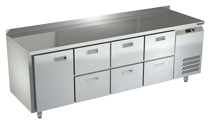 Холодильный стол Техно-ТТ СПБ/Т-222/16-2206 предназначается для раскатки теста, обработки продуктов и ингредиентов, заморозки и хранения продукции, а также для размещения теплового оборудования на предприятиях общественного питания, торговли и пищевых производствах. Двери оснащены доводчиками. Материал корпуса и столешницы - нержавеющая сталь AISI 430, материал дна и задней панели - оцинкованная сталь.
