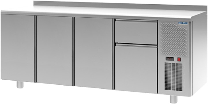 Холодильный стол POLAIR TM4-0001-G серии Grande используется на предприятиях общественного питания, торговли и пищевых производствах для хранения продуктов и обработки ингредиентов. Модель оснащена автоматической оттайкой, динамическим охлаждением, терморегулятором, двухъярусным агрегатом, уплотнитель с магнитными вставками и регулируемыми ножками. Материал изделия - высококачественная нержавеющая сталь, гарантирующая механическую прочность, термоизоляцию, герметичность и долговечность стола.