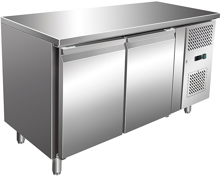 Холодильный стол VIATTO GN2100TN используется на предприятиях общественного питания, торговли и пищевых производствах для обработки, охлаждения и кратковременного хранения пищевой продукции. Стол оснащен электронным термостатом, 2 холодильными камерами с распашными дверьми, 2 полками для гастроемкостей и панелью управления с цифровым дисплеем. Материал корпуса и столешницы - нержавеющая сталь.