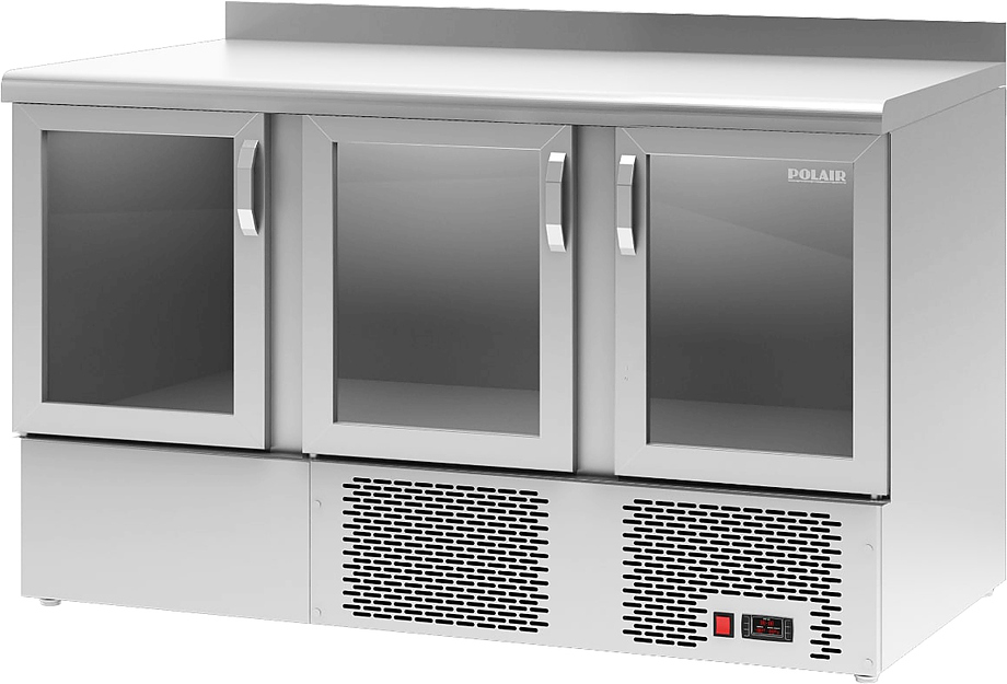 Холодильный стол POLAIR TDi3GN‑G используется на предприятиях общественного питания, торговли и пищевых производствах для хранения продуктов и обработки ингредиентов. Модель оснащена автоматической оттайкой, динамическим охлаждением, терморегулятором, уплотнителем с магнитными вставками, внутренней LED-подсветкой и регулируемыми ножками. Материал внешнего и внутреннего корпуса - высококачественная нержавеющая сталь, материал дверей - стеклопакет в алюминиевой раме, материал теплоизоляции - пенополиуретан, материал полок - окрашенная оцинкованная проволока, материал ручек - алюминий.