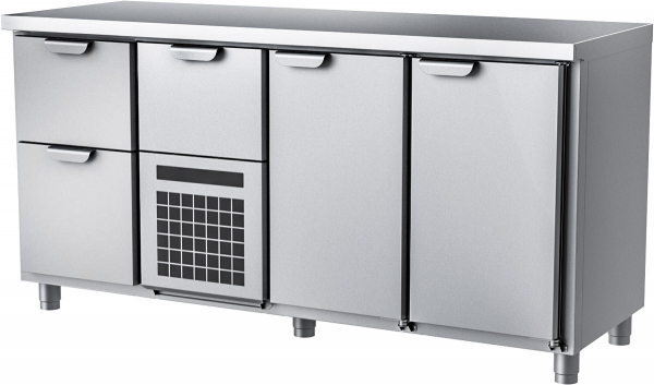 Холодильный стол HappyChef TC GH 2-CBR-1-1 используется на предприятиях общественного питания, торговли и пищевых производствах для хранения и обработки продуктов питания в охлажденном виде. Модель оснащена быстросъемными модулями, моющимся фильтром и регулируемыми ножками. Материал корпуса - высококачественная нержавеющая сталь AISI 430, материал столешницы - высококачественная нержавеющая сталь AISI 304 (толщина 2 мм).