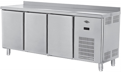 Холодильный стол Empero EMP.200.70.01 предназначен для раскатки теста и обработки ингредиентов для приготовления блюд, а также для охлаждения и кратковременного хранения скоропортящихся продуктов и напитков на предприятиях общественного питания и торговли. Цифровая панель управления. Стол оснащен бортом, 3 распашными дверьми, регулируемой по высоте полкой-решеткой и регулируемыми ножками. Материал корпуса и ножек - нержавеющая сталь, материал испарителя - медь, материал ребер - алюминий, материал внутреннего покрытия - пластик, теплоизоляция выполнена из полиуретана высокой плотности (без содержания CFC и HCFC).