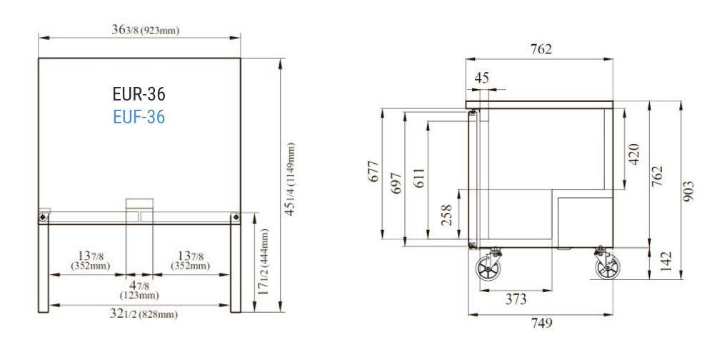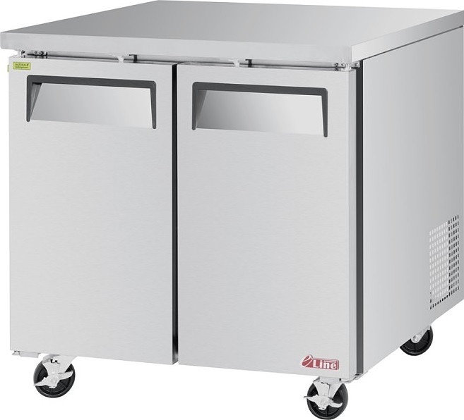 Холодильный стол Turbo air EUR-36 используется на предприятиях общественного питания, торговли и пищевых производствах для обработки, охлаждения и кратковременного хранения продуктов, а также для раскатки теста. Модель оснащена аналоговым управлением, встроенным холодильным агрегатом, распашными дверьми и столешницей с боковыми фиксаторами. Материал корпуса, фронтальной облицовки двери, столешницы и крышки - высококачественная нержавеющая сталь SUS439 производства Posco, материал полок – стальные прутки с виниловым покрытием, материал разделочной доски – термостойкий полиэтилен, материал термоизоляции – пенополиуретан высокой плотности, испаритель с антикоррозийным покрытием.
