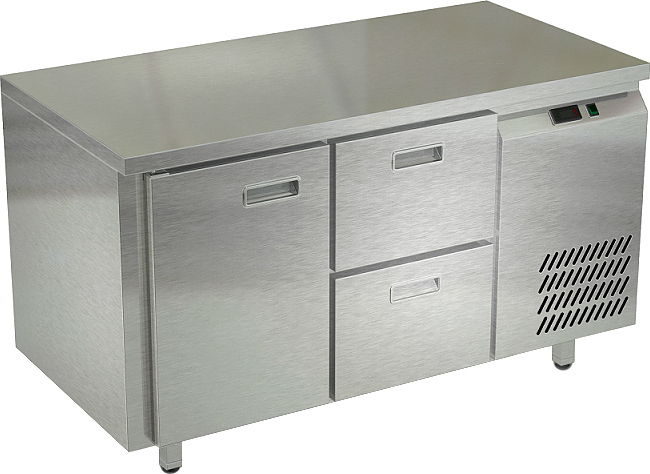 Холодильный стол Техно-ТТ СПБ/О-122/12-1306 предназначен для раскатки теста, обработки, охлаждения и кратковременного хранения продуктов и напитков на предприятиях общественного питания и торговли. Модель оснащена компрессором АСС (Италия), секция - направляющими и сетчатой полкой, дверь и ящики - доводчиками. Корпус выполнен из нержавеющей стали, задняя стенка - из оцинкованной стали.