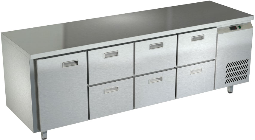 Холодильный стол Техно-ТТ СПБ/О-122/16-2206 предназначен для раскатки теста, обработки, охлаждения и кратковременного хранения продуктов и напитков на предприятиях общественного питания и торговли. Модель оснащена компрессором АСС (Италия), секция - направляющими и сетчатой полкой, дверь и ящики - доводчиками. Корпус выполнен из нержавеющей стали, задняя стенка - из оцинкованной стали.
