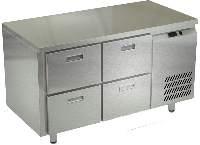Холодильный стол Техно-ТТ СПБ/О-123/04-2206 предназначен для раскатки теста, обработки, охлаждения и кратковременного хранения продуктов и напитков на предприятиях общественного питания и торговли. Модель оснащена компрессором АСС (Италия), каждый ящик - доводчиками. Корпус выполнен из нержавеющей стали, задняя стенка - из оцинкованной стали.