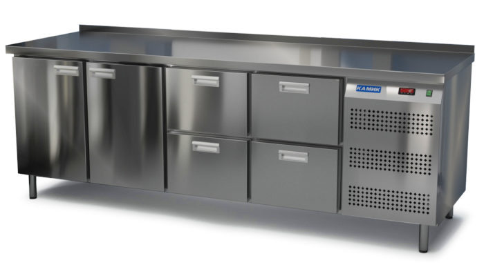 Холодильный стол КАМИК СО-Т-24236 используется на предприятиях общественного питания и торговли для охлаждения и хранения продуктов, напитков и готовых блюд, а также для установки теплового оборудования на него. Конструкция разделена на секции, каждая из которых оборудована сетчатой полкой и парой направляющих. Корпус выполнен из нержавеющей стали.
