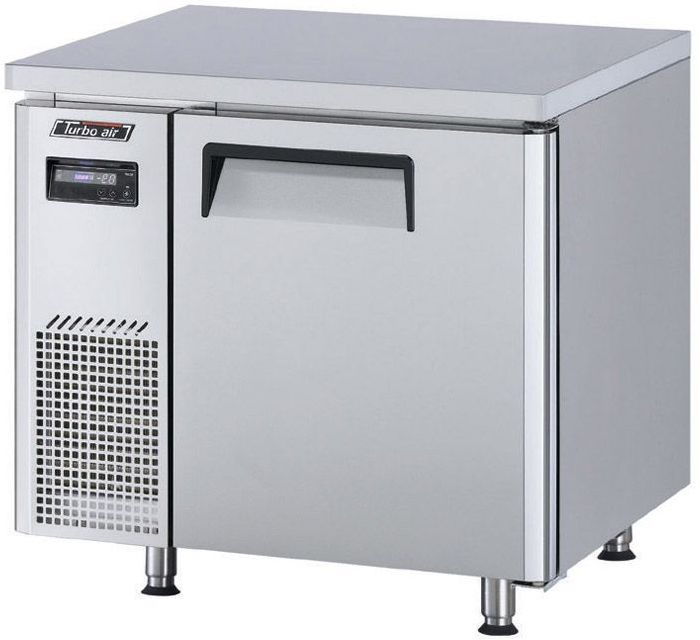 Холодильный стол Turbo air KUR9-1 состоит из рабочей поверхности, на которой можно раскатывать тесто и обрабатывать ингредиенты для приготовления блюд, и камеры, предназначенной для охлаждения и кратковременного хранения скоропортящихся продуктов и напитков на предприятиях пищевой промышленности, общественного питания и торговли. Корпус выполнен из нержавеющей стали с применением пожаробезопасных стенок толщиной 60 мм и уплотнения из теплоэффективного АБС-пластика (акрилонитрилбутадиенстирола), не пропускающего конденсата, оборотная сторона и низ - из гальванизированной стали, пол - из нержавеющей стали с алюминиевыми вставками по бокам и сзади, регулируемые полки - из толстой стальной проволоки с виниловым покрытием, 4 регулируемые ножки - из нержавеющей стали.