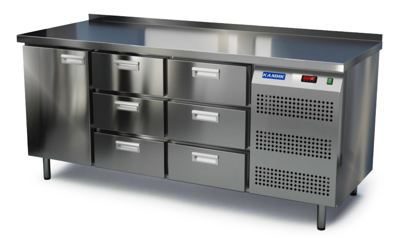 Холодильный стол КАМИК СО-16236 используется на предприятиях общественного питания и торговли для охлаждения и хранения продуктов, напитков и готовых блюд. Конструкция разделена на секции, каждая из которых оборудована сетчатой полкой и парой направляющих. Корпус выполнен из нержавеющей стали AISI 430 толщиной 1 мм, столешница - из нержавеющей стали AISI 304 толщиной 1,5 мм.
