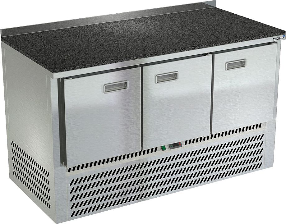 Холодильный стол Техно-ТТ СПН/О-421/30-1407 предназначен для раскатки теста, обработки, охлаждения и кратковременного хранения продуктов и напитков на предприятиях общественного питания и торговли. Модель оснащена компрессором АСС (Италия), каждая секция - направляющими и сетчатой полкой, двери  - доводчиками. Корпус выполнен из нержавеющей стали, задняя стенка - из оцинкованной стали, столешница - из гранитной крошки.