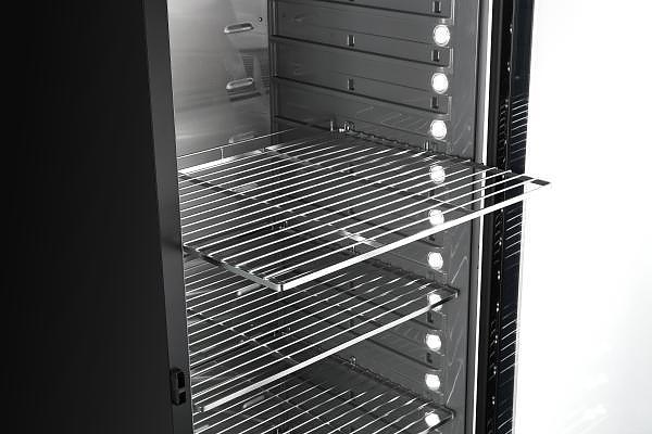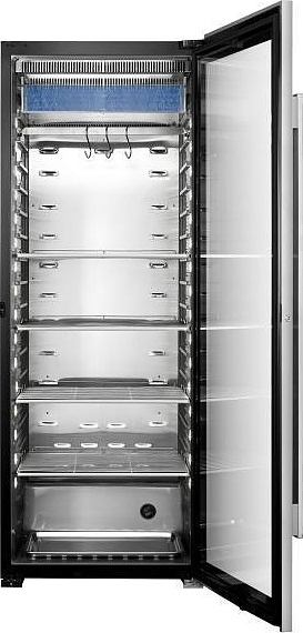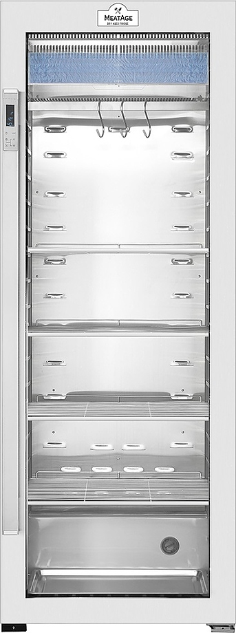 Шкаф для мяса MeatAge VI200 WT используется для охлаждения, хранения и вызревания мяса, ветчины и салями на предприятиях общественного питания, торговли, пищевых производствах и в домашних условиях. Модель оснащена регулировкой температуры и влажности, автоматической разморозкой, системой испарения конденсата, тачпадом со светодиодной подсветкой, оптической и акустической сигнализацией, регулируемыми полками, механическим замком и резервуаром для воды. Материал корпуса - окрашенный металл, материал боковых внутренних стенок - ABS-пластик, материал полок, задней стенки и комплектующих - высококачественная нержавеющая сталь, материал двери - ударопрочное закаленное стекло.