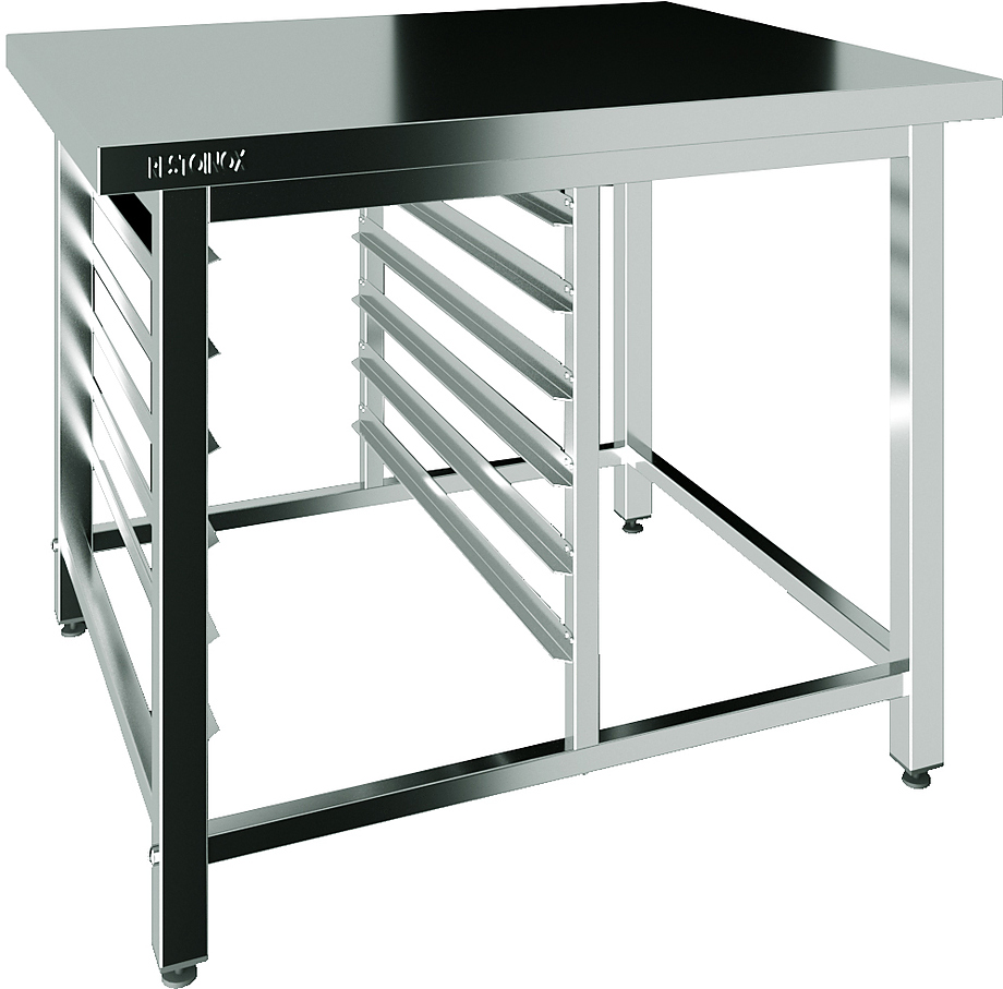 Подставка Restoinox ППКР-1-75/73 предназначается для установки пароконвектоматов UNOX XEVC на предприятиях общественного питания, торговли и пищевых производствах. Опоры ножек регулируются по высоте. Материал разборного каркаса - труба из нержавеющей стали AISI 430 (40x40 мм), материал столешницы и направляющих - нержавеющая сталь AISI 430.