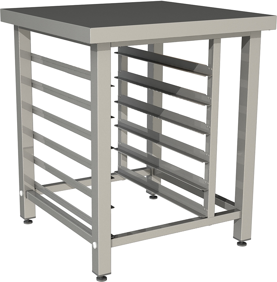Подставка Restoinox ПКПР-1-61/60 предназначается для установки конвекционных печей UNOX XEFT и UNOX XFT а также SMEG ALFA 43 на предприятиях общественного питания, торговли и пищевых производствах. Опоры ножек регулируются по высоте. Материал разборного каркаса - труба из нержавеющей стали AISI 430 (40x40 мм), материал столешницы и направляющих - нержавеющая сталь AISI 430.