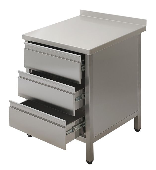 Стол производственный закрытый Simeco СЗЕ0407БЯ используется на предприятиях общественного питания и торговли для приготовления различных блюд, а так же для хранения посуды, сыпучих продуктов и специй. Модель закрыта с трех сторон. Имеет 3 выдвижных ящика из нержавеющей стали. Каркас стола выполнен из нержавеющей стали AISI 430, столешница - из нержавеющей стали AISI 430. Ножки - труба 40х40 мм.