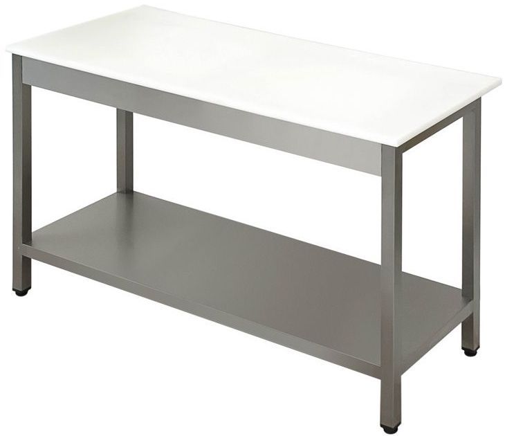 Стол разделочный Simeco СРП1806П используется на предприятиях общественного питания и торговли для разделки и приготовления различных блюд. Модель имеет сплошную нижнюю полку и фартук 100 мм по фасаду. Каркас стола выполнен из нержавеющей стали AISI 430, столешница - полипропилен толщиной 20мм. Ножки - труба 40х40 мм.