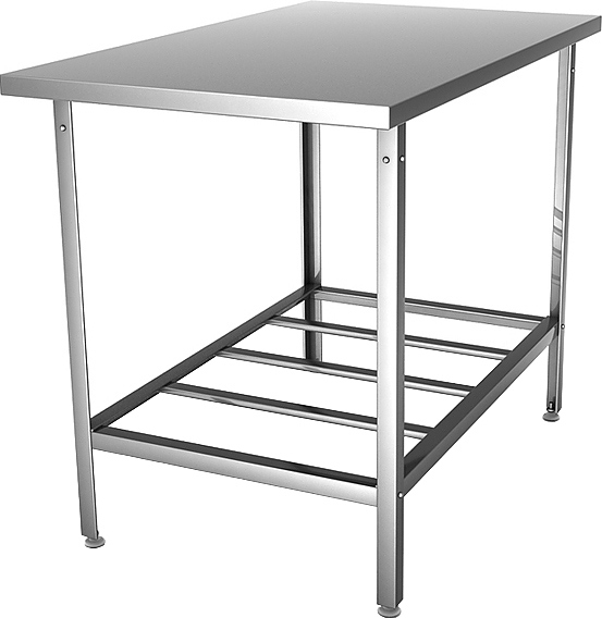 Производственный стол Hessen СПО 12/7 используется на предприятиях пищевой промышленности, общественного питания и торговли как для работы с продуктами питания, так и для хранения на нем посуды и кухонного инвентаря. Изделие произведено с использованием программы Technology without Injuries - комплекса технологических решений, направленных на уменьшение травмоопасности для персонала, работающего на оборудовании. Каркас и полка выполнены из углеродистой стали, покрытой полимерной краской, столешница - из пищевой нержавеющей стали, с укреплением из ламинированного ДСП.