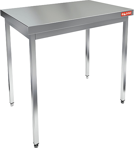 Столешница выполнена из нержавеющей стали толщиной 1 мм, усилена ребрами жесткости, опорные ножки - из трубы 40х40 мм из нержавеющей стали.
