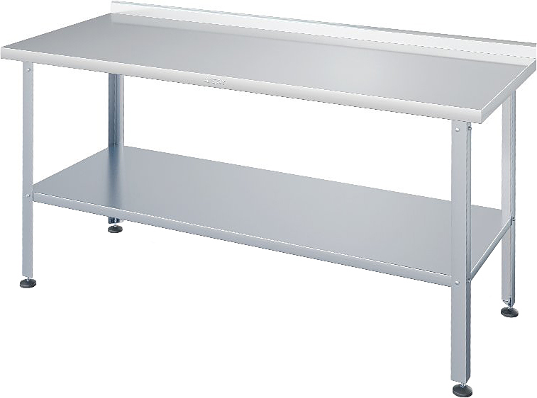 Производственный стол ATESY СР-С-1-600.800-02-ПСОц серии Стандарт используется на предприятиях общественного питания, торговли и пищевых производствах для раскатки теста, приготовления различных блюд и хранения кухонных принадлежностей. Материал рабочей поверхности – нержавеющая сталь AISI 430 усилена листом ЛДСП (толщина 16 мм), материал каркаса и сплошной полки – оцинкованная сталь, конструкция - разборная.