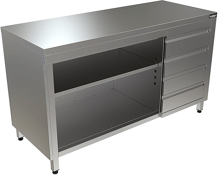 Стол производственный Кобор СТ/1-120/60/О используется на предприятиях общественного питания, торговли и пищевых производствах для хранения кухонной утвари и обработки различных ингредиентов перед приготовлением. Материал каркаса - высококачественная нержавеющая сталь (труба 40х40 мм), материал столешницы - высококачественная нержавеющая сталь AISI 430, усиленная листом ЛДСП (толщина 16 мм).