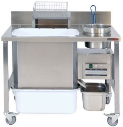 Стол для панировки RoboLabs SR-P1-1A бизнес-класса используется на предприятиях общественного питания, торговли и пищевых производствах для обработки различных продуктов питания. Модель оснащена ручным просеивателем и съемной полкой под корзины. Материал каркаса и столешницы - высококачественная нержавеющая сталь AISI 430.