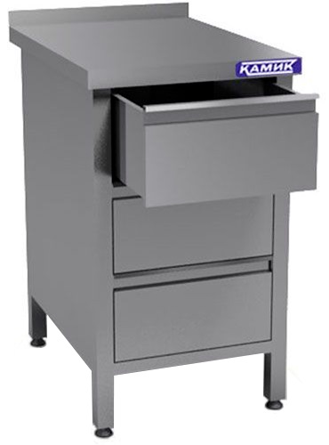 Стол производственный КАМИК СБЗЯ-4543 используется на предприятиях общественного питания, торговли и пищевых производствах для приготовления широкого спектра блюд и обработки ингредиентов. Стол оснащен бортом и ящиками. Материал изготовления - нержавеющая сталь AISI 430.
