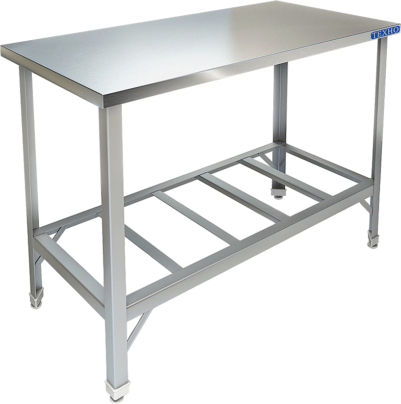 Производственный стол Техно-ТТ СП-139/1807 предназначен для разделки и обработки пищевых продуктов, а также для расстановки и хранения посуды и кухонного инвентаря на предприятиях общественного питания, торговли и пищевых производствах. Модель оснащена регулируемыми по высоте ножками, что позволяет компенсировать неровности пола. Материал разборного каркаса - труба (40x40 мм) из нержавеющей стали AISI 430, материал столешницы - нержавеющая сталь AISI 304, материал полки-решетки - нержавеющая сталь AISI 430.