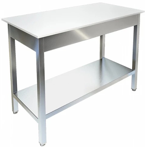 Производственный стол Техно-ТТ СП-433/2007 предназначен для раскатки теста и обработки ингредиентов для приготовления кондитерских и хлебобулочных изделий, а также для расстановки и хранения посуды и кухонного инвентаря на предприятиях общественного питания, торговли и пищевых производствах. Модель оснащена регулируемыми по высоте ножками, что позволяет компенсировать неровности пола. Материал разборного каркаса - труба (40x40 мм) из нержавеющей стали AISI 430, материал сплошной полки - нержавеющая сталь AISI 430, материал столешницы - полипропилен.