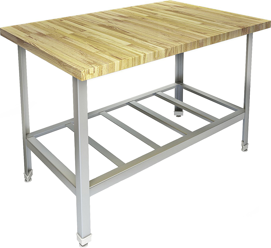 Кондитерский стол Техно-ТТ СП-339/1208 предназначен для раскатки теста и обработки ингредиентов для приготовления кондитерских и хлебобулочных изделий, а также для расстановки и хранения посуды и кухонного инвентаря на предприятиях общественного питания, торговли и пищевых производствах. Модель оснащена регулируемыми по высоте ножками, что позволяет компенсировать неровности пола. Материал разборного каркаса - труба (40x40 мм) из нержавеющей стали AISI 430, материал полки-решетки - нержавеющая сталь AISI 430, материал столешницы - бук.
