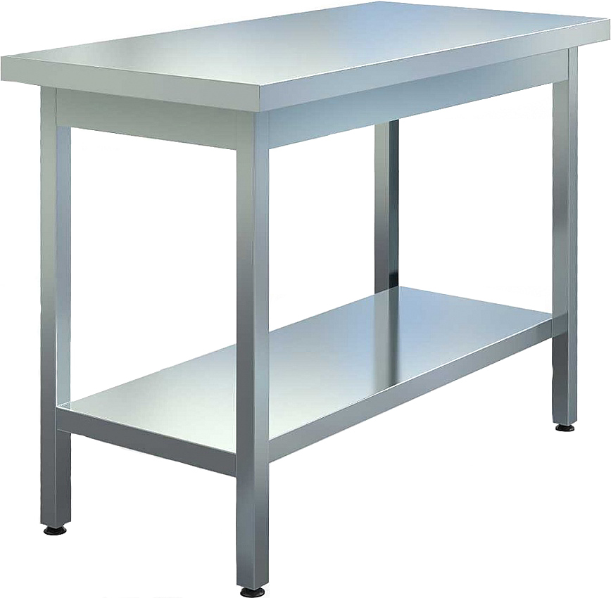 Производственный стол Assum СП-П2-7/7 серии Premium-2 используется на предприятиях общественного питания, торговли и пищевых производствах для работы с тестом, обработки ингредиентов перед приготовлением различных блюд и хранения кухонного инвентаря. Материал столешницы - нержавеющая сталь AISI 430 с листом ЛДСП, материал полки и каркаса - нержавеющая сталь AISI 430 (труба 40х40 мм толщиной 0.7 мм), материал опор ножек - пластик.