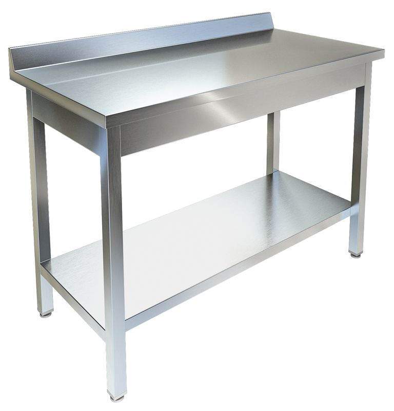 Производственный стол Техно-ТТ СПП-233/1207 предназначен для разделки и обработки пищевых продуктов, а также для расстановки и хранения посуды и кухонного инвентаря на предприятиях общественного питания и торговли. Модель оснащена регулируемыми по высоте ножками, что позволяет компенсировать неровности пола. Разборный каркас выполнен из трубы 40х40 мм из нержавеющей стали AISI 430, столешница - из нержавеющей стали AISI 304 и ЛДСП, полка - из нержавеющей стали.
