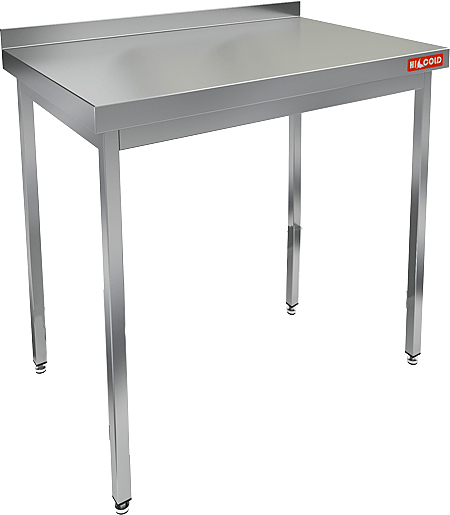 Столешница выполнена из нержавеющей стали толщиной 0,8 мм, усилена листом ДСП, опорные ножки - из трубы 40х40 мм из нержавеющей стали.