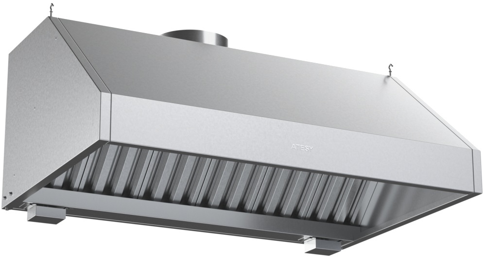Зонт вытяжной ATESY ЗВН-Б-1-1000.800.500-02 используется на предприятиях общественного питания, торговли и пищевых производствах для очистки воздуха от различных паров, дыма, жира и утилизации продуктов горения. В модели предусмотрен жиросборник и легкосъемные лабиринтные фильтры. Материал корпуса - оцинкованная сталь, материал лабиринтных фильтров - нержавеющая сталь AISI 430.