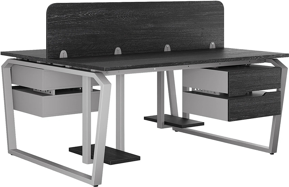 Офисный стол Кобор TB/2-80/120 aluminum/wood предназначен для двух рабочих мест и идеально подходит для офисов и кабинетов руководителей. Модель оснащена опорами в виде обратной трапеции с скошенными верхними углами. Материал столешницы - прочный ЛДСП толщиной 25 мм, усиленная снизу металлическим каркасом, материал опор и каркаса - окрашенный металл.
