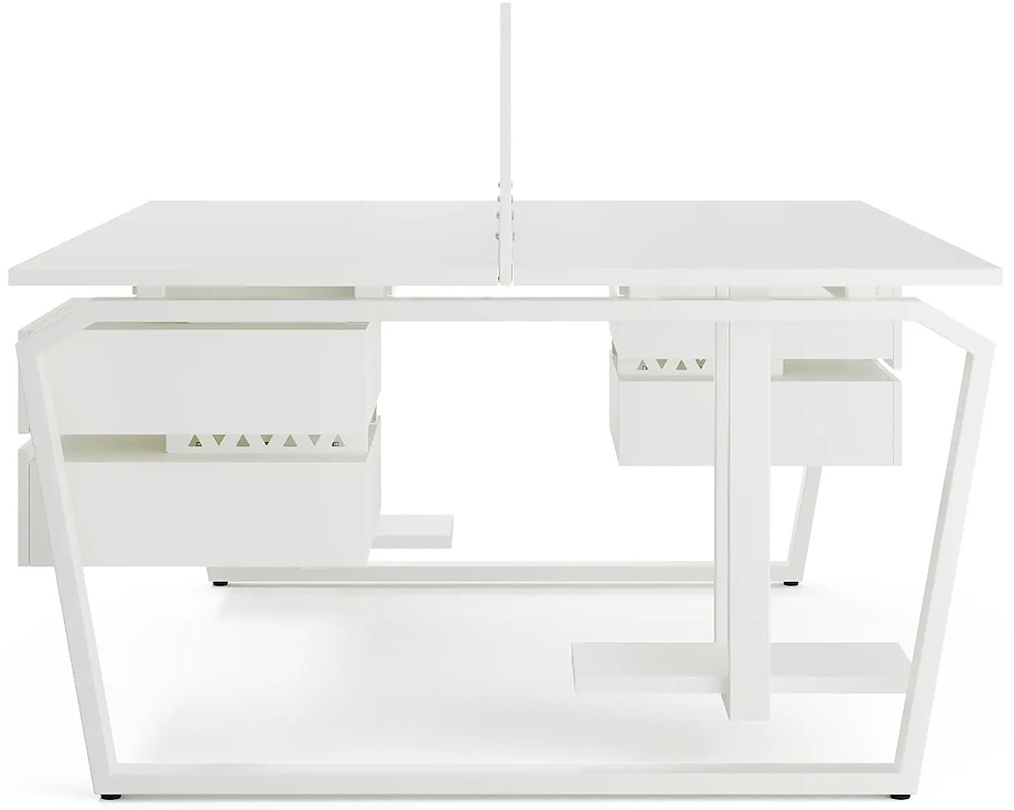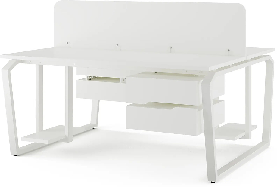 Офисный стол Кобор TB/2-80/120 white/premium предназначен для двух рабочих мест и идеально подходит для офисов и кабинетов руководителей. Модель оснащена опорами в виде обратной трапеции с скошенными верхними углами. Материал столешницы - прочный ЛДСП толщиной 25 мм, усиленная снизу металлическим каркасом, материал опор и каркаса - окрашенный металл.